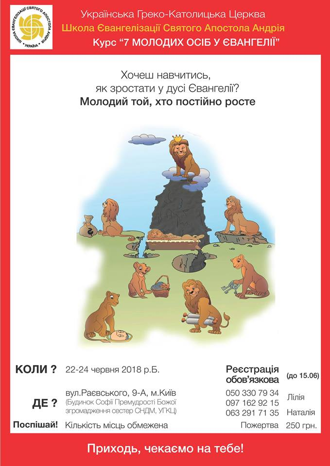 У днях 22-24 червня 2018 року, у Києві проведуть курс «7 молодих людей у Євангелії». Даний курс призначений для...