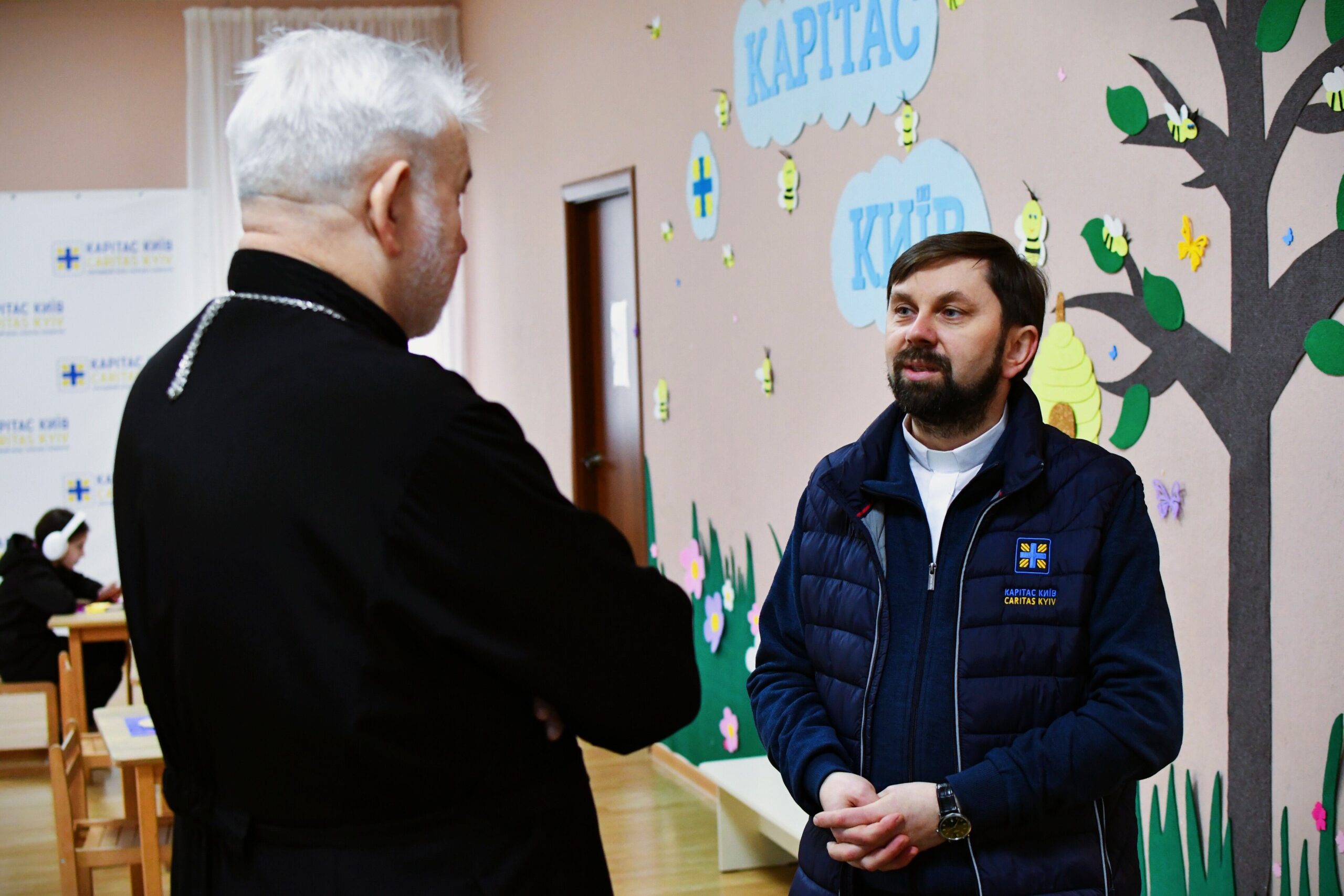 Під час зустрічі владика Йосиф відвідав одне із занять у просторі підтримки для дітей та родин, що діє при Карітасі. Єпископ благословив фахівців соціального служіння на подальшу працю та висловив щиру вдячність за їхню відданість справі милосердя.