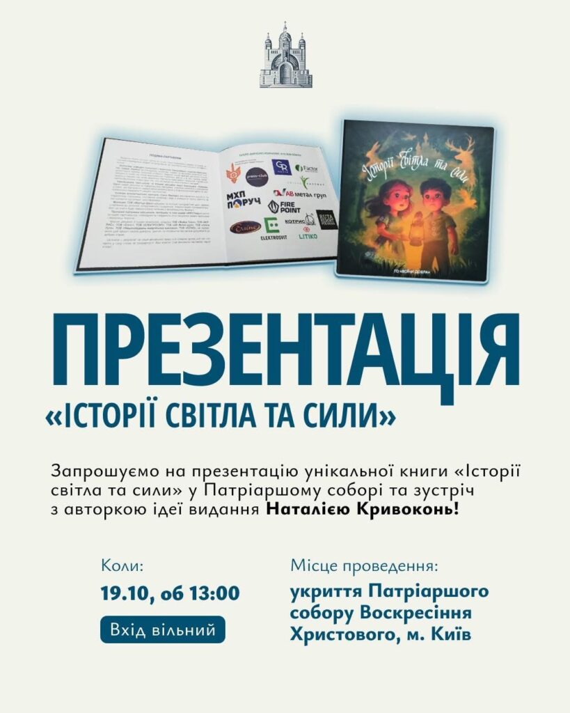 У неділю, 19 жовтня 2025 року, о 13:00, в укритті Патріаршого собору Воскресіння Христового відбудеться особлива подія – презентація збірки казок «Історії світла та сили», створеної курсантами – майбутніми військовими психологами – під науковим керівництвом професорки, практичної психологині Наталії Кривоконь.